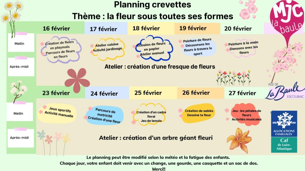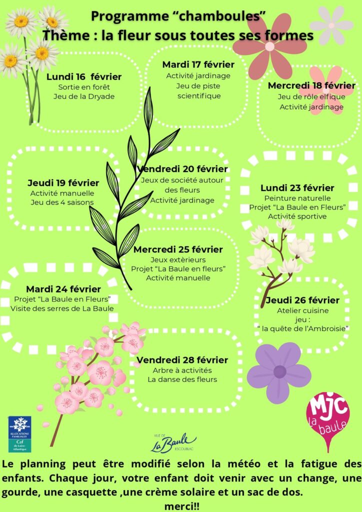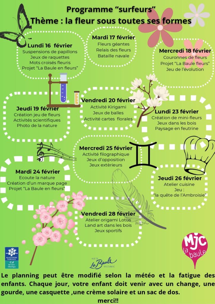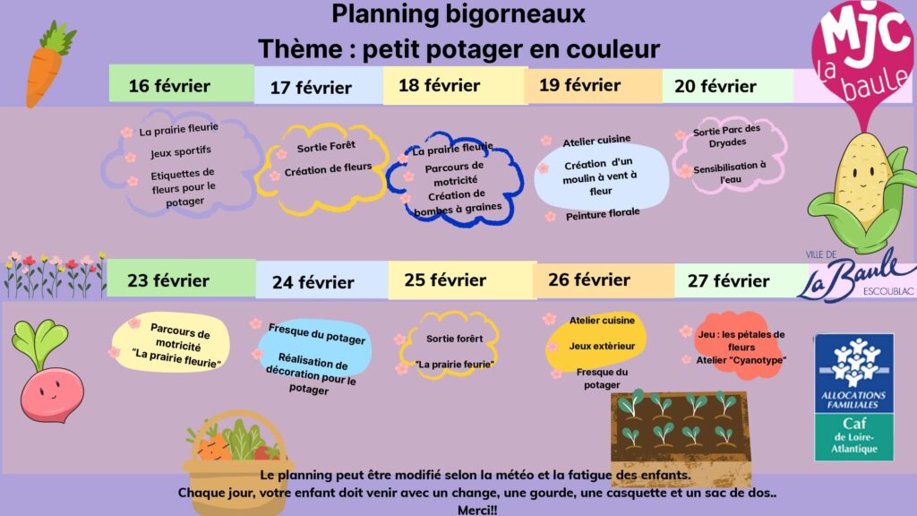 Pendant les vacances scolaires, le planning par semaine est disponible à l’accueil.