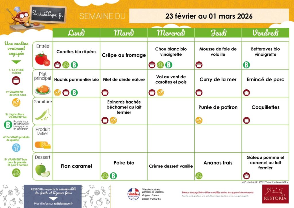 • 12h30 : repas des primaires (chamboules et surfeurs)