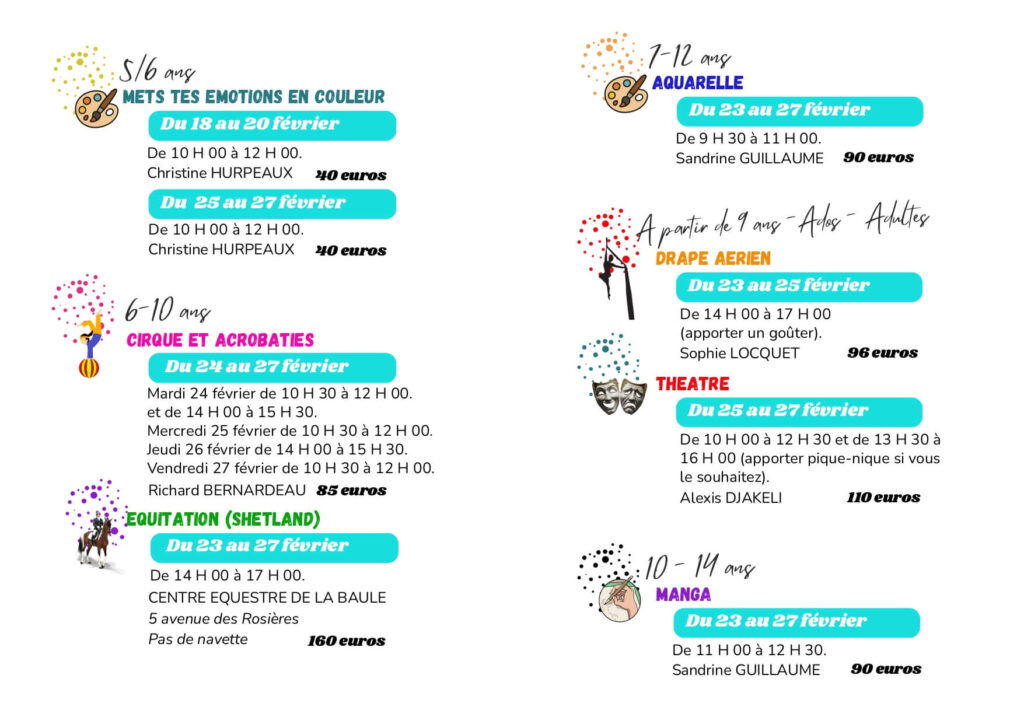 stages VACANCES SCOLAIRES